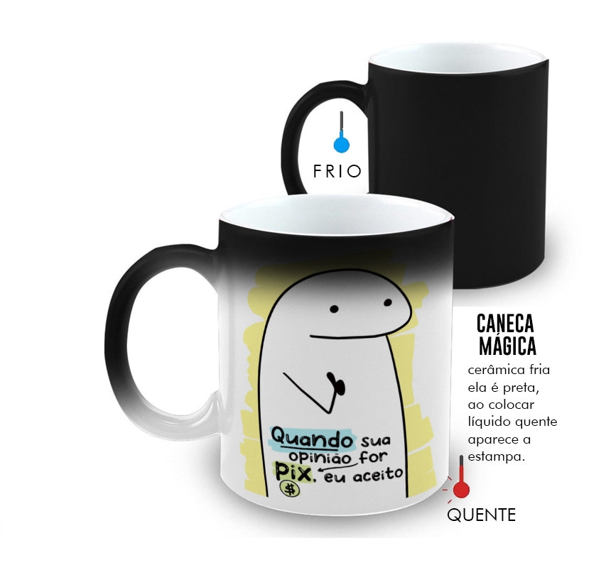 Caneca Mágica Porcelana Presente Meme Flork Opinião PIX Amar