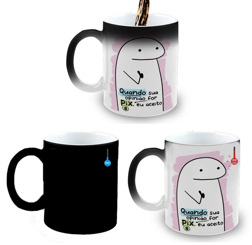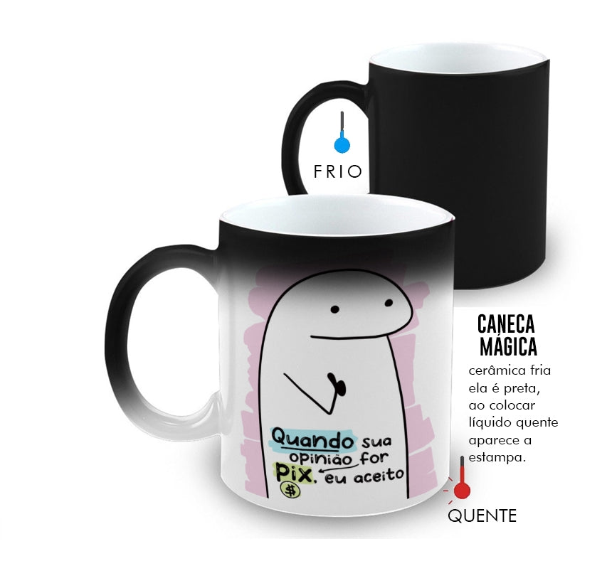 Caneca Mágica Porcelana Presente Meme Flork Opinião PIX Rosa